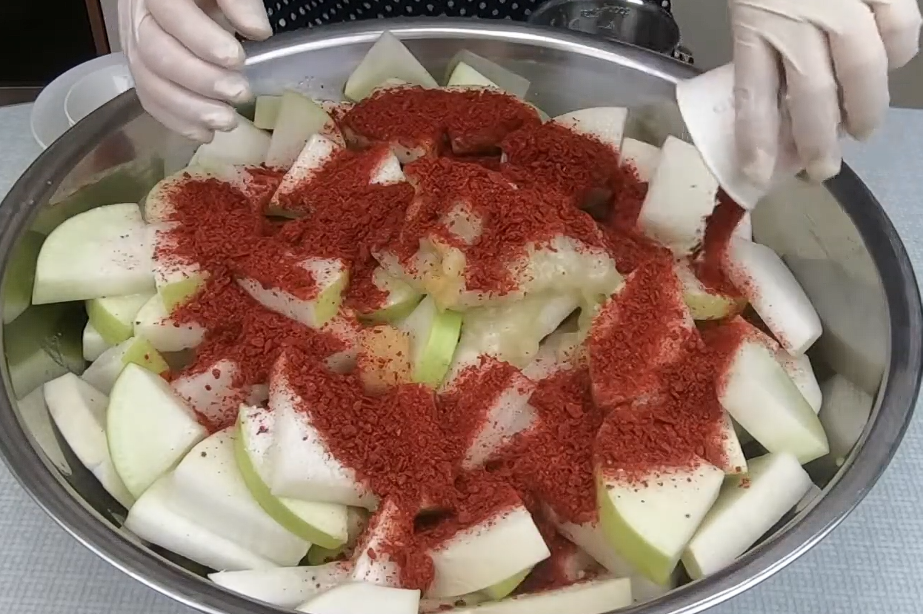 ■ 석박지 깍두기 담그는법 3단계 : 무와 양념 섞기