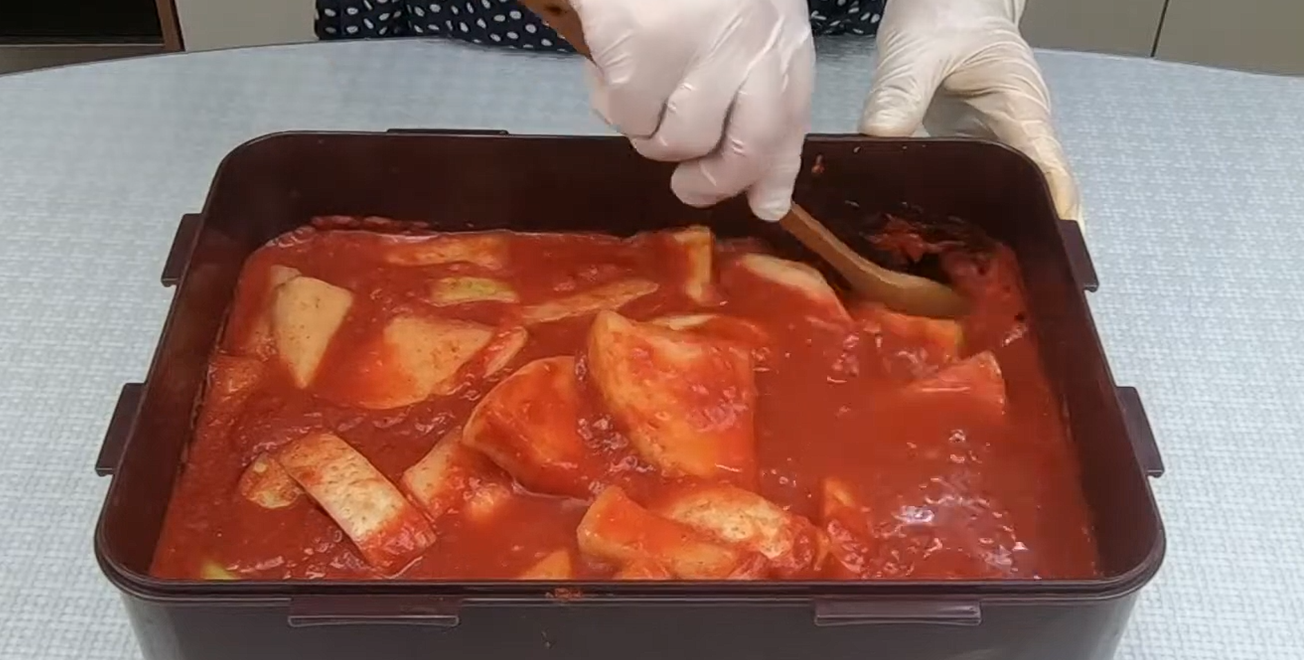 - 양념이 아래로 많이 가라앉지 않게 살살 뒤집어가며 섞기