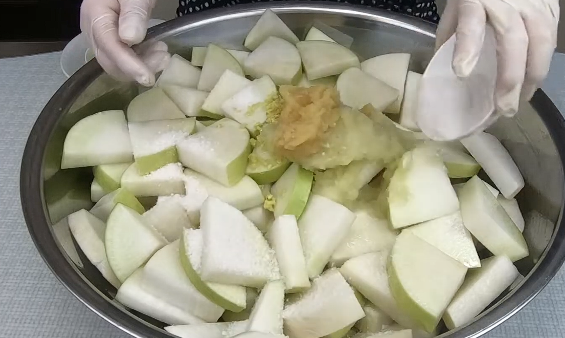 이 과정만 정확히 하면 석박지 깍두기 담그는법의 절반은 성공입니다.