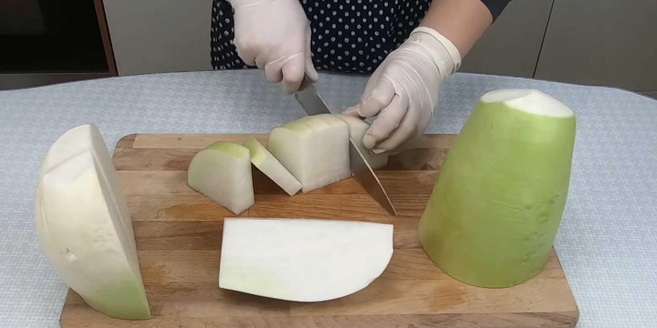 - 너무 크면 짠맛이 덜 배고, 너무 작으면 식감이 사라집니다.