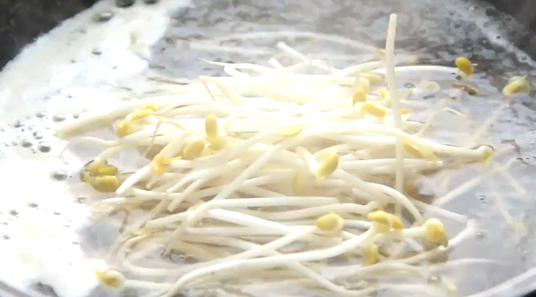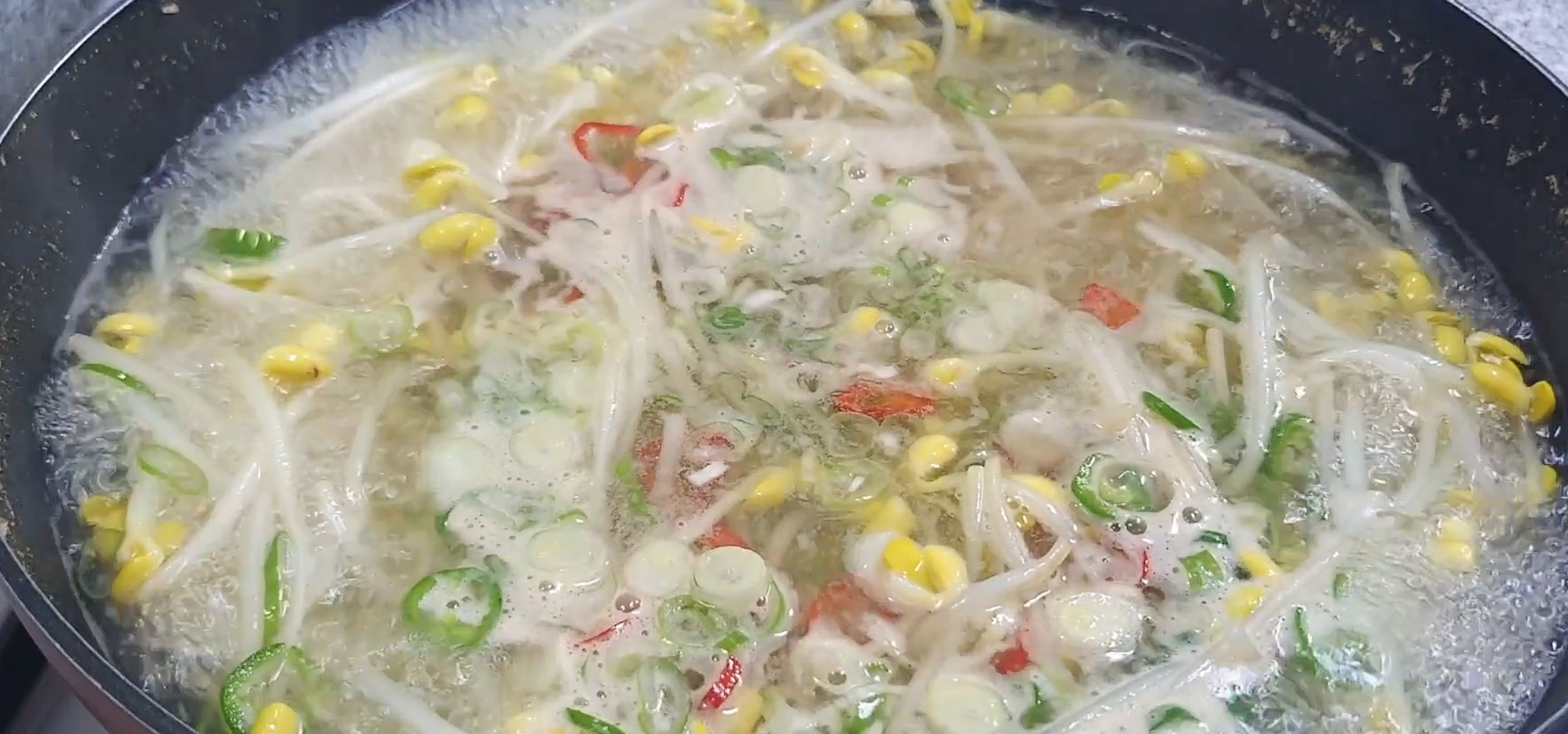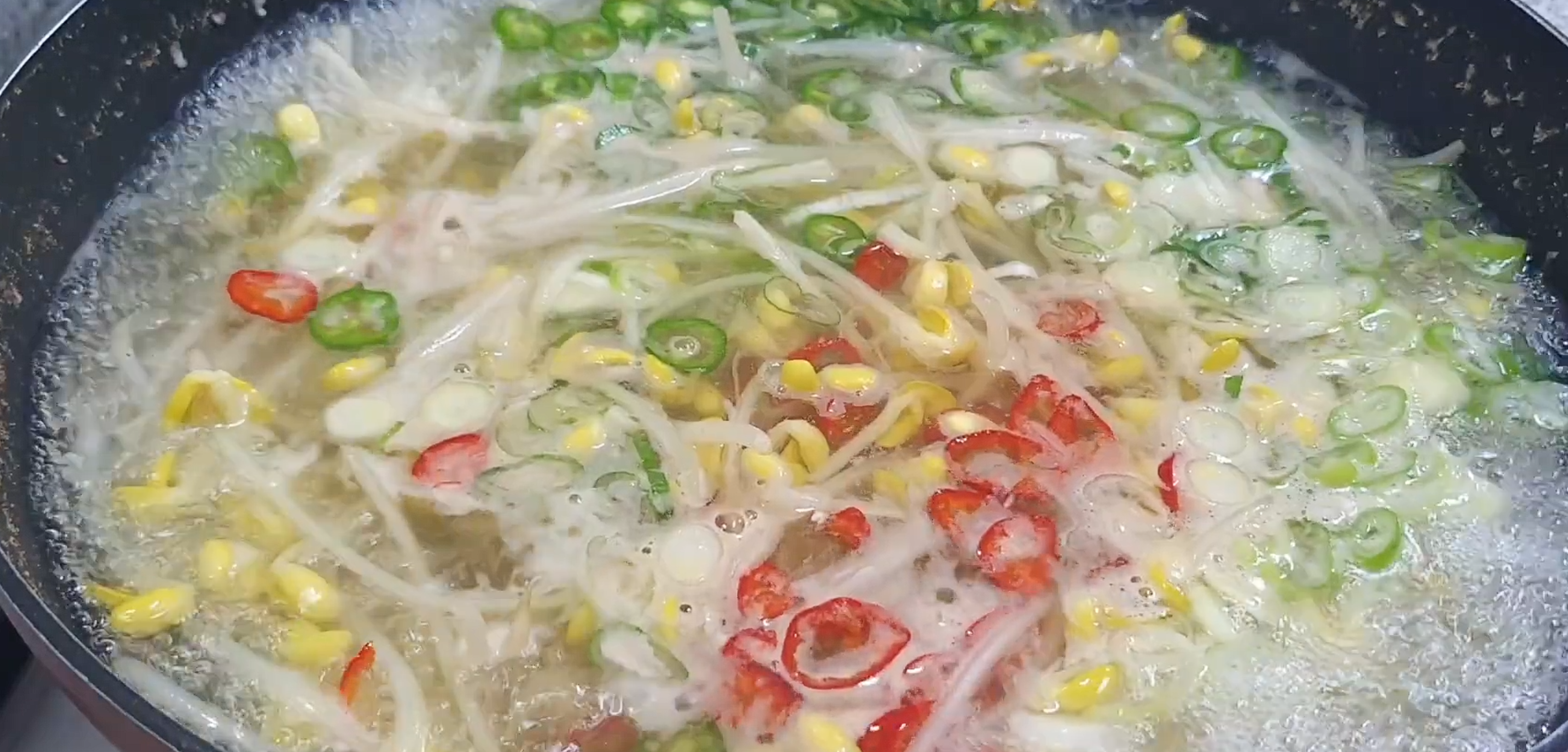 - 끓고 있는 육수에 콩나물을 한 번에 넣습니다.